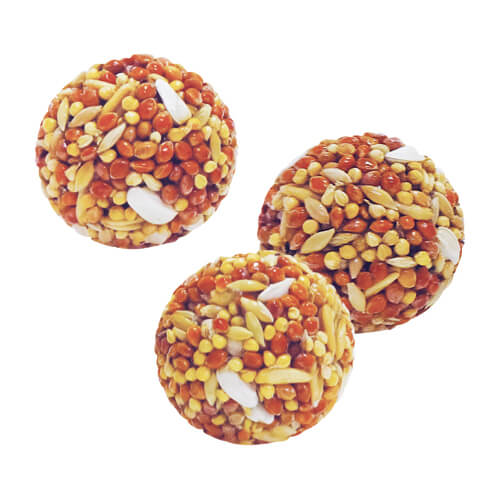 かじって、こわして、たべて、たのしい!小・中型のインコ類が大好きな素材をボール状に固めたおやつです。