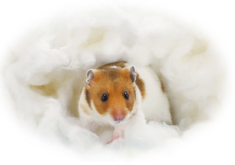 そんな竹を原料として作られた綿は、硬い幹のもつ印象とは反対に、とてもしなやかでふわふわとした手ざわりになり、小動物に適した巣材として使うことができます。