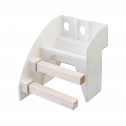 低アレルギー素材でハムスターがかじりやすい固さの広葉樹を使用、ステップ上部にはごはんも置けます。