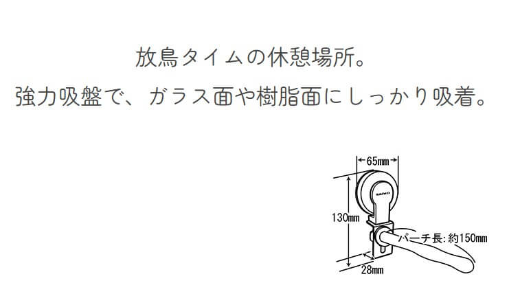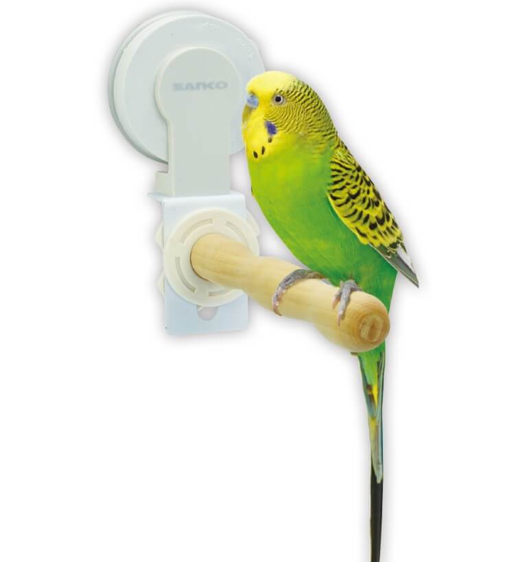 放鳥タイムの休憩場所。お部屋の中に強力吸盤で、ガラス面や樹脂面にしっかり吸着